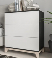 Четыре выдвижных ящика на шариковых направляющих. Система открывания «Push (Пусх)-to (то)-Open (Опен)». Цоколь комода - деревянное основание, высотой 100 мм.