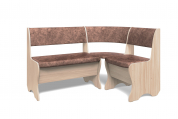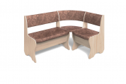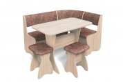 Набор мебели для кухни, включающий в себя угловую скамью, стол и два табурета. В угловой скамье под сиденьями расположены два ящика. Каркас ЛДСП. Покрытие верхней части столешницы стола - термостойкий пластик, кромка ПВХ 1 мм. Современная комбинация цветов обивки и декора.