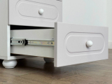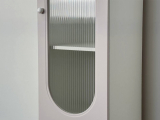 Модель оснащена одной распашной дверцей с вставкой из прозрачного рифлёного стекла, а также двумя вместительными выкатными ящиками в нижней части для хранения одежды, текстиля или аксессуаров. Внутреннее наполнение можно выбрать в зависимости от задач: шкаф комплектуется полками или штангой для плечиков, что позволяет адаптировать его под разные потребности.