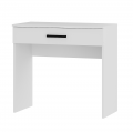 Коллекция мебели для спальни «Фьюжн» является воплощением эстетики минимализма. Белый цвет в сочетании с черной фурнитурой, строгие линии, простой конструктив – все это лучшие черты мебельного дизайна. Туалетный стол «СТ-02» имеет компактные размеры, посему позволит Вам организовать женский уголок даже в небольшой спальне. В выдвижном ящике поместится косметика, аксессуары и другие личные вещи.